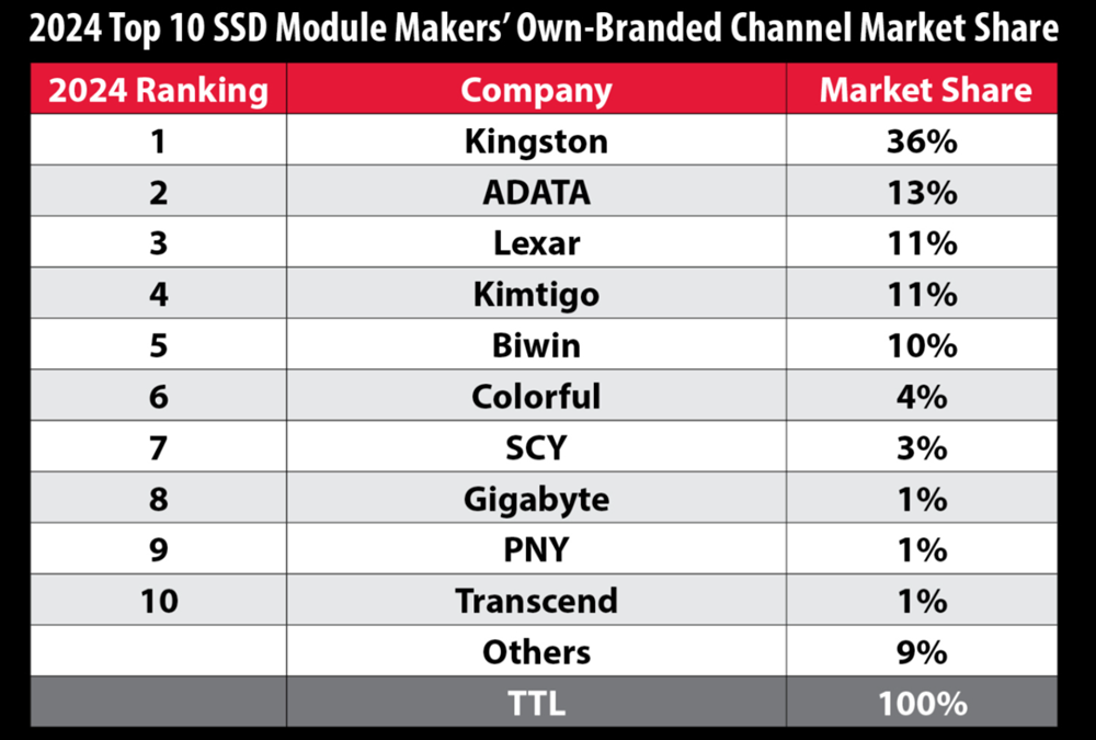 A TrendForce által közölt számadatok alapján a Kingston termékei tették ki a 2024-ben a globálisan leszállított egységek mintegy 36 százalékát.